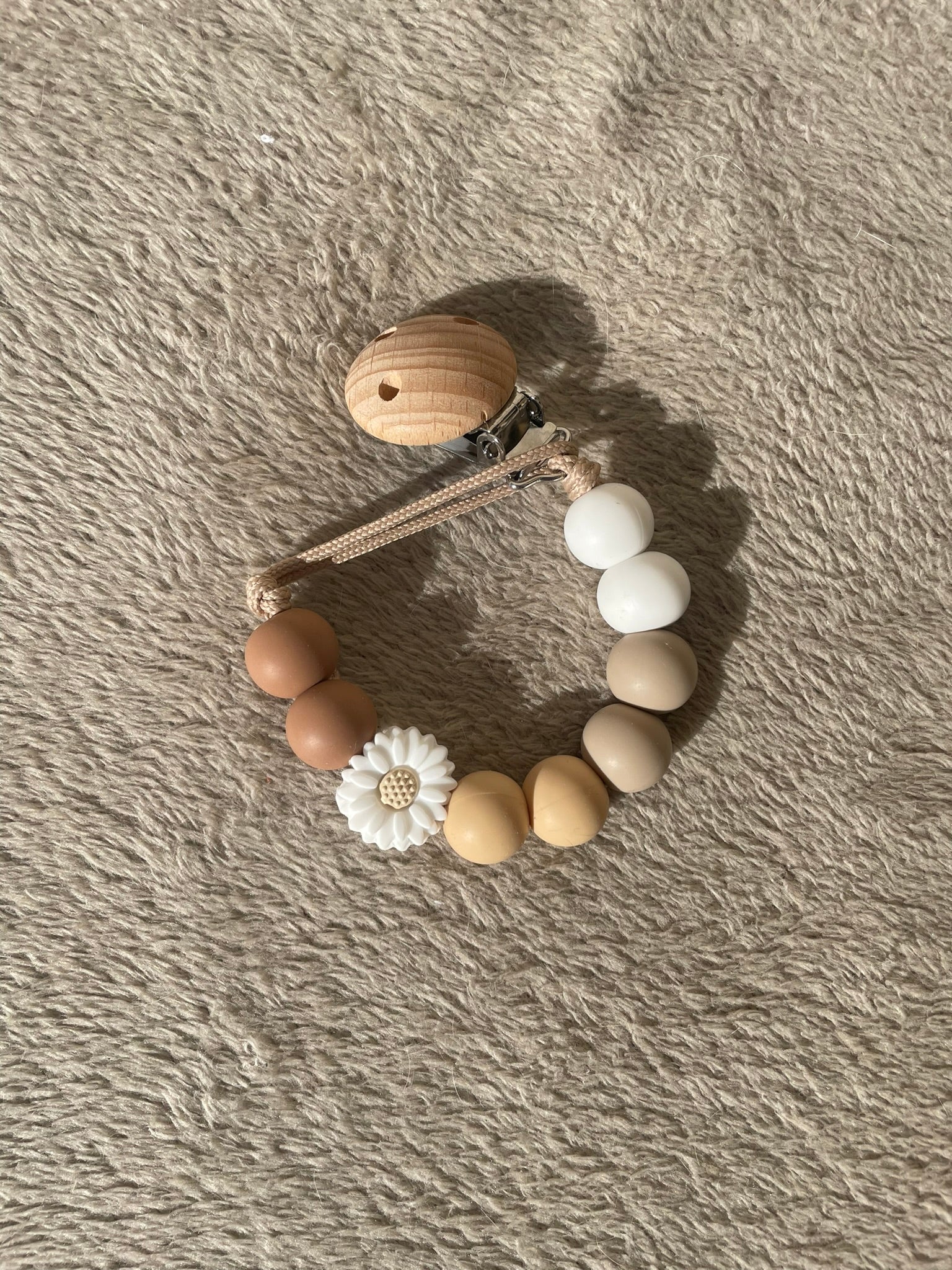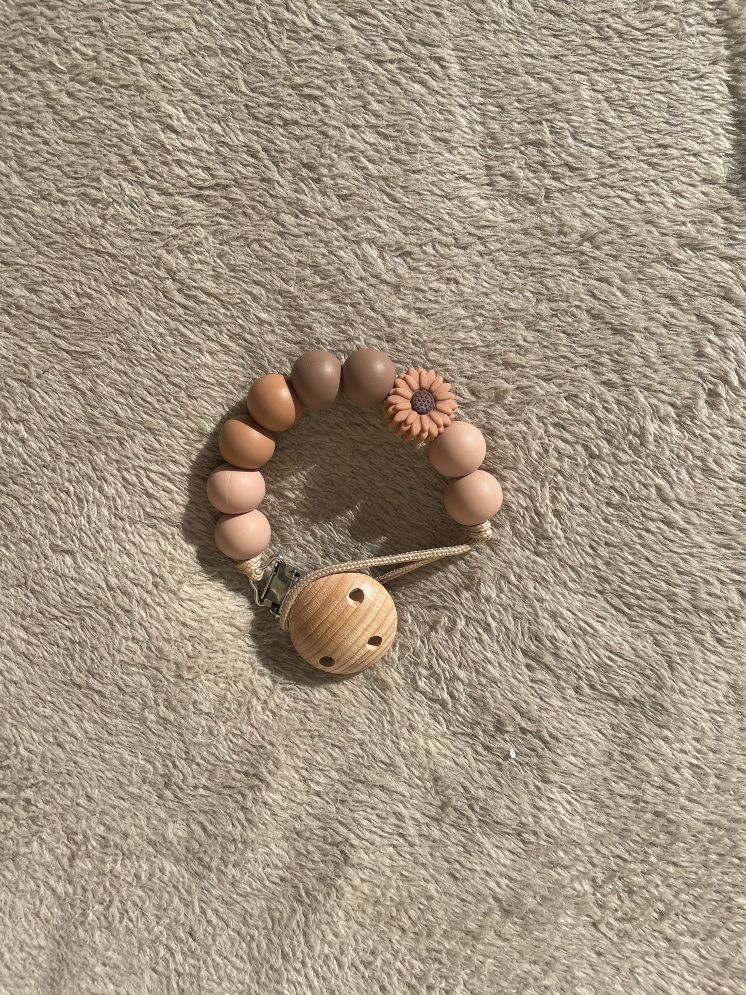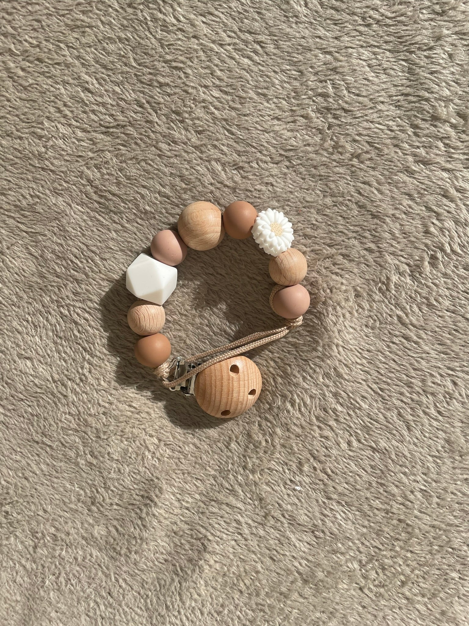 Attache tétine avec perles en silicone. Agréable comme cadeau de maternité ou à offrir lors d'une baby shower ! Avec une attache-sucette, votre tout-petit a toujours la tétine à portée de main, vous ne la perdrez donc plus jamais. Avec le clip, vous pouvez attacher le cordon aux vêtements, au porte-bébé, au landau ou aux bretelles du maxi-cosi. Une tétine ou une figurine secondaire peut être passée dans la boucle de l'attache-tétine.