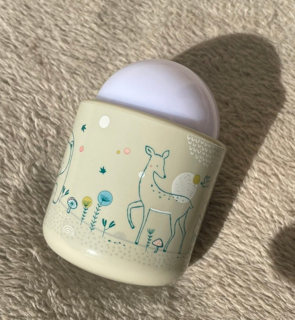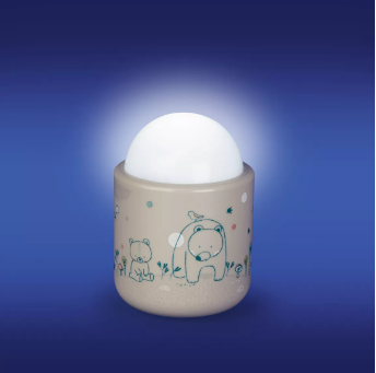 Cette jolie veilleuse nomade, s'allume et s'eteint toute seule. Rechargeable sur prise, elle a une semaine d'autonomie. Peut facilement se transporter, grace a son support facilement maniable.